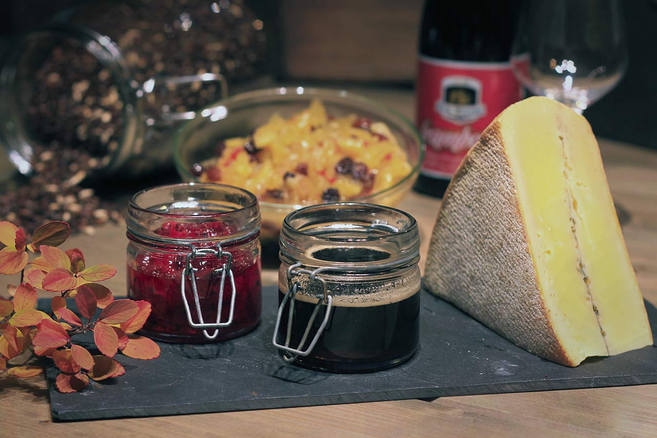 Kun fantasien setter grenser for hva du kan lage tilbehør til osten av. Vi har valgt en tradisjonell sirup med en vri på mørkt øl, et ripssyltetøy med bær fra egen hage og en ananaschutney